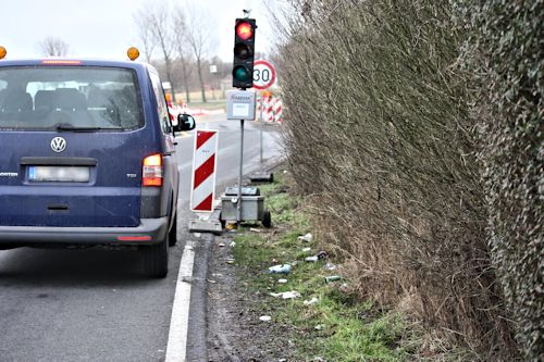 Seit über die Clade in der Grethener Straße eine neue Straßenbrücke gebaut wird, ist der Verkehr auf eine Spur verengt und wird per Ampel geregelt. Diesen kurzen Stopp nutzen einige Verkehrsteilnehmer, um ihren Abfall aus dem Fenster zu werfen. Ein „vorbildliches“ Verhalten, vor allem für die Kinder, die im Fahrzeug dahinter sitzen. Wenn der Wind nicht einiges auf die Felder wehen würde, sähe es noch viel schlimmer aus. Die Mitarbeiter des Bauhofes räumen den Dreck schon weg. In den bayerischen Bergen heißt man Leute, die sich so verhalten, Alpenschwein.