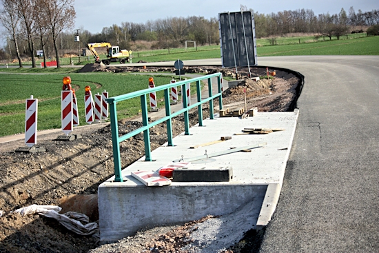 Die neue Brücke ist ein Bauwerk auf höchstem Niveau. Sie soll ja auch für lange Zeit einer erheblichen Beanspruchung Stand halten. Der Straßenanschluss ist übersichtlich und ausgebaut.