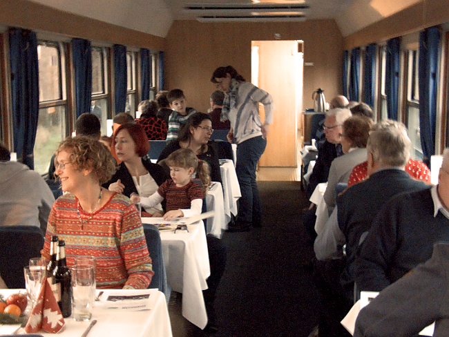 Die Plätze waren übrigens ausgebucht, bei einem mitgeführten Mitropa-Wagen der oberen Klasse kein Wunder.