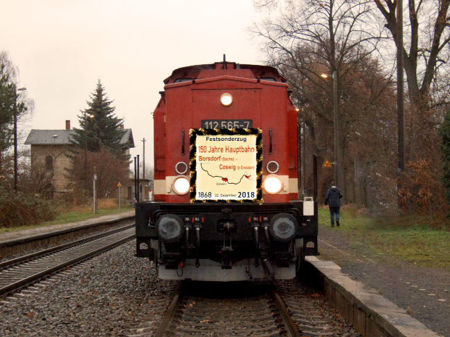 In seinem Rundschreiben vom 13.12.2018 verweist Reinfried Polter, Spiritus Rector des Eisenbahnfreundeskreises Großsteinberg – Böhlen, an die Aufnahme des Zugverkehrs auf der sächsischen Hauptbahnlinie Borsdorf-Grimma-Döbeln-Roßwein-Nossen-Meißen-Coswig (BC-Linie) am 22. Dezember 1868.