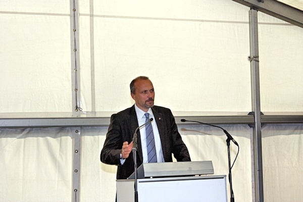 Wer so glücklich war, beide Tage an der Eröffnungsfeier teilnehmen zu können, spürte sehr deutlich, dass es dem Unternehmen bag wirklich ernst ist mit der Behauptung, hier ansässig zu sein, dazu zu gehören, Teil der Region zu sein. Man nimmt die Sorgen der Bevölkerung wegen zu hoher Belastung nicht auf die leichte Schulter. So sind aus den geplanten 10 Mio € beinahe 15 Mio geworden, weil man das Rohsteinlager eingehaust und ein Silo gebaut sowie weitere Lärm- und Staubschutzmaßnahmen ergriffen hat. Die schallgedämmte Bahnverladung gehört ebenfalls dazu. Nächtlicher Rangierbetrieb soll vermieden werden. Wenn es doch mal des Nachts laut werden sollte, dann liegt die Verantwortung nicht bei der Basalt AG, sondern in der Regel bei der Bahn, die sich in der Vergangenheit nicht immer als zuverlässiger Partner erwiesen hat.