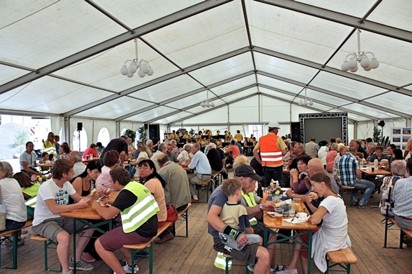 Ein großes Festzelt bot jede Menge Sitzplätze, das Grimmaer Jugenblasorchester sorgte für gute Stimmung, eine hiesige Catering-Firma für jede Menge Speisen und Getränke. Auch für Kinder gab es Angebote, die großes Interesse erweckten – siehe Fotogalerie. Dass das Wetter mitspielte, hatten sich bei so viel Aufwand die Veranstalter redlich verdient.